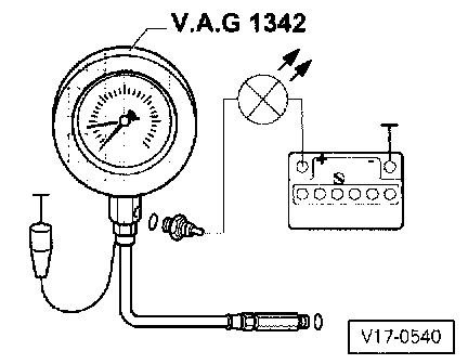 - Remove 0.7 bar oil pressure switch -F1- (brown) and thread into tester.