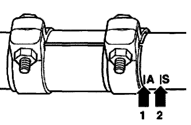 ^ In production, exhaust pipe and rear mufflers are installed as a single welded unit. For repairs the exhaust pipe and rear muffler are supplied as separate parts with a double clamp at the joint,