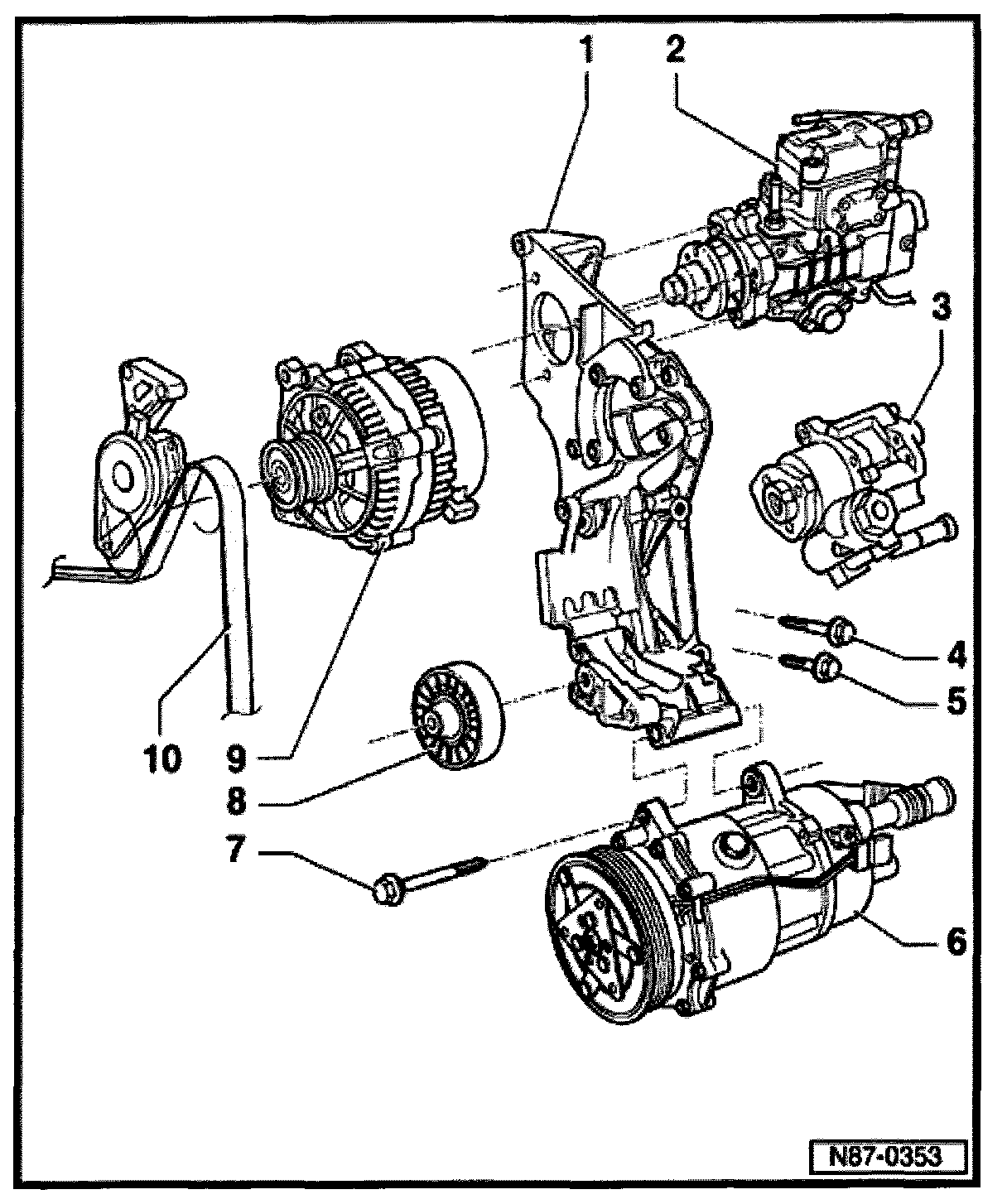 1 - Bracket for injection pump, generator, compressor and power steering pump