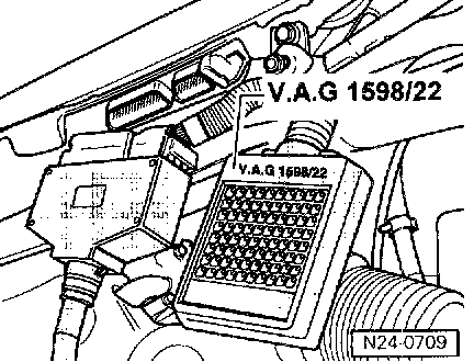 - Connect test box VAG 1598/22 to harness connector of control module.