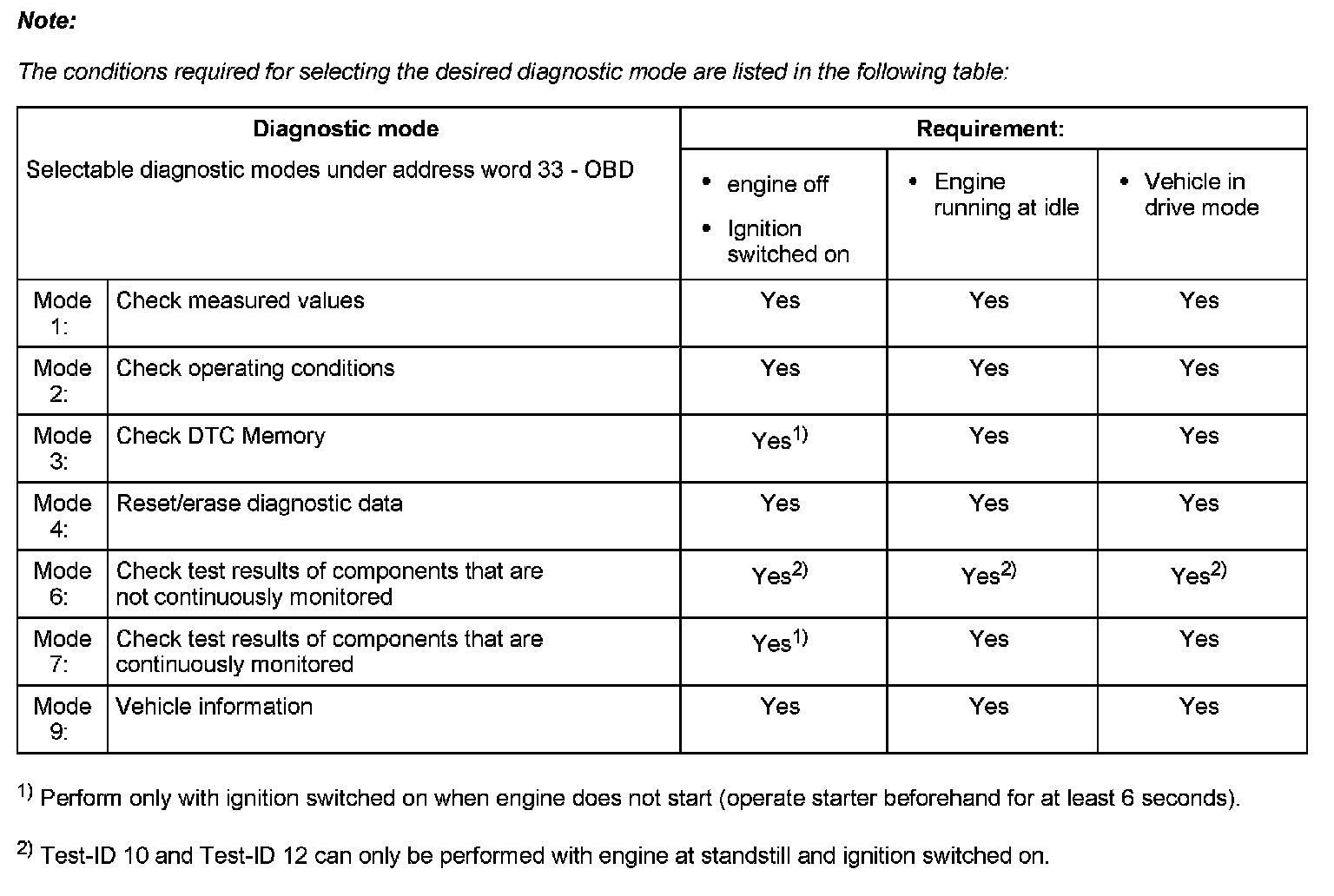 Selectable Diagnostic Modes Under Address Word 33 - OBD