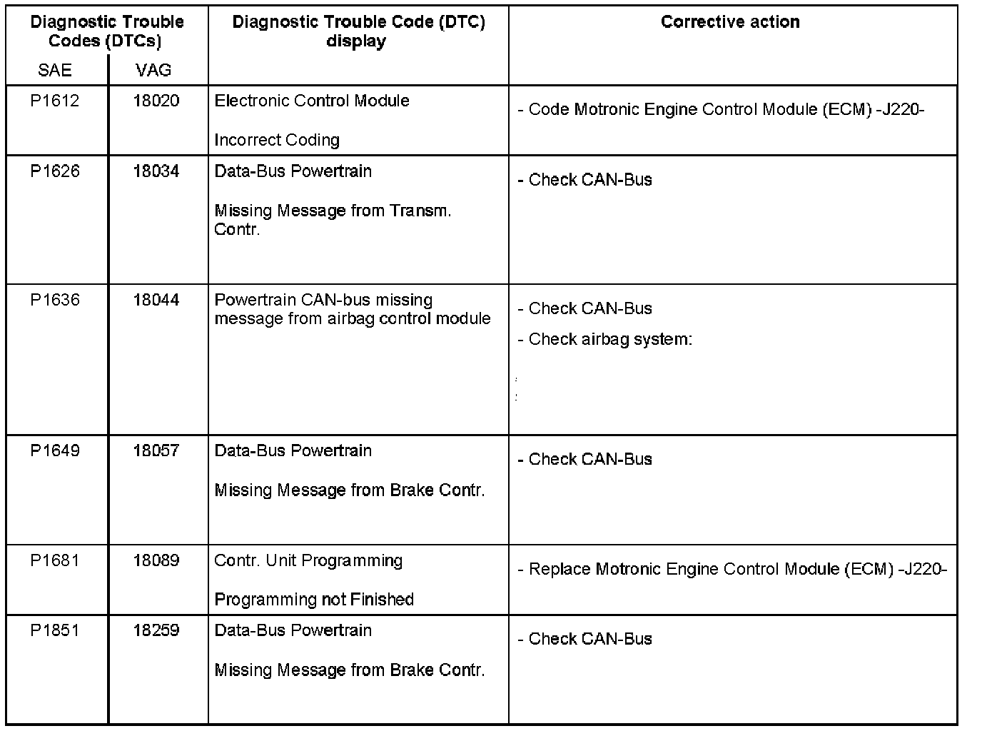 A L L Diagnostic Trouble Codes ( DTC )