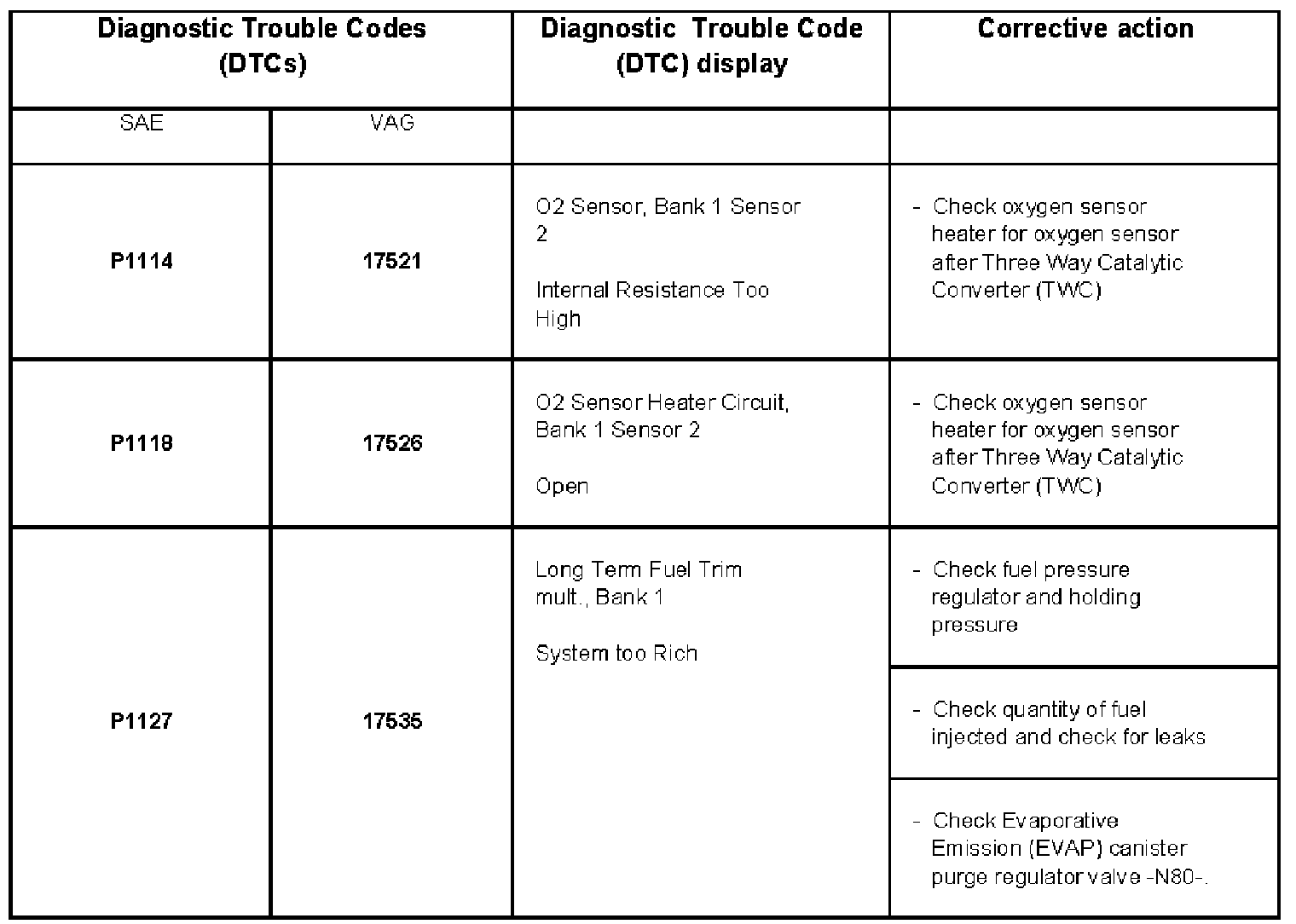 DTC P1114 - P1127:
