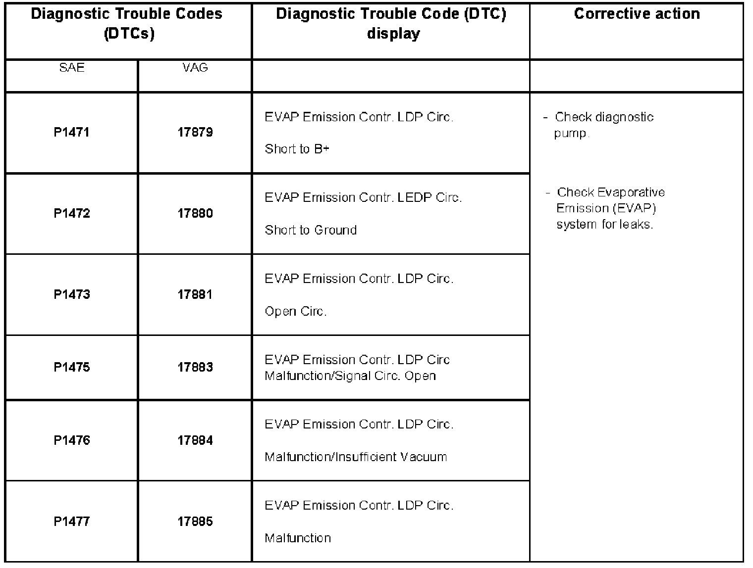 DTC P1471 - P1477: