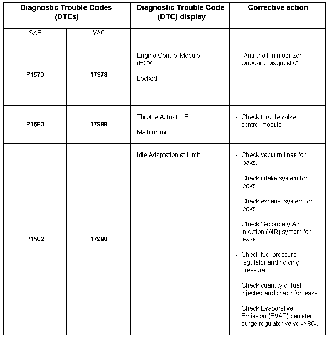 DTC P1570 - P1582: