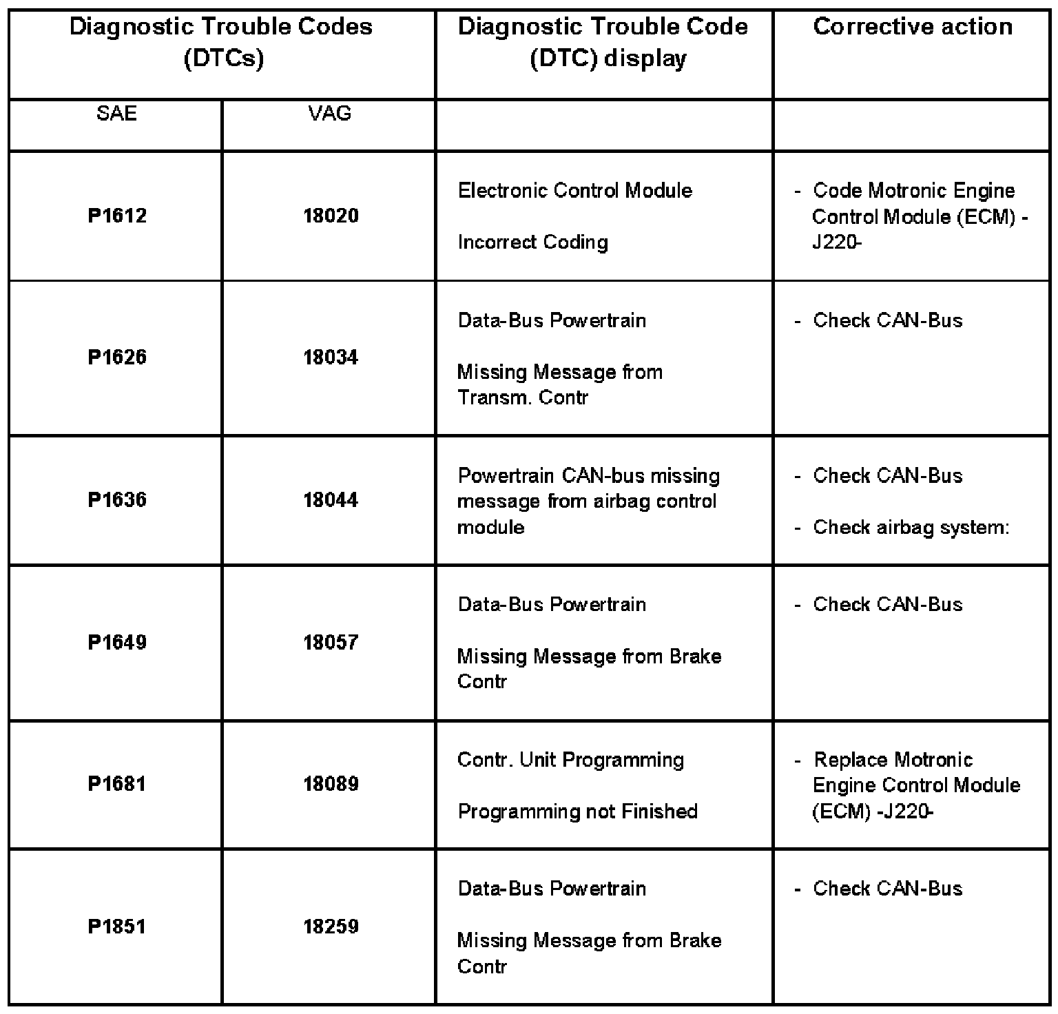 A L L Diagnostic Trouble Codes ( DTC )