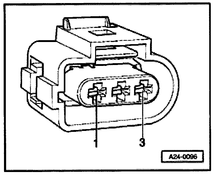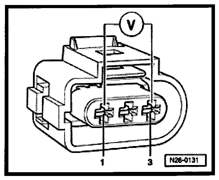 - Connect multimeter to measure voltage with adapter cables from VW1594 to terminals 1 (B+) and 3 (GND) on Camshaft Position (CMP) sensor -G40- harness connector.