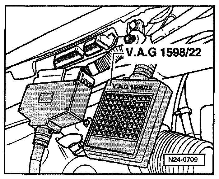 - Connect VAG1598/22 test box to control module wiring harness connector.