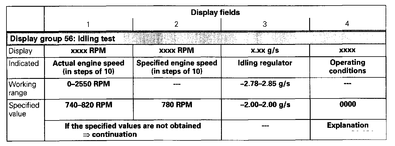 - Check actual idle speed in display field 1.
