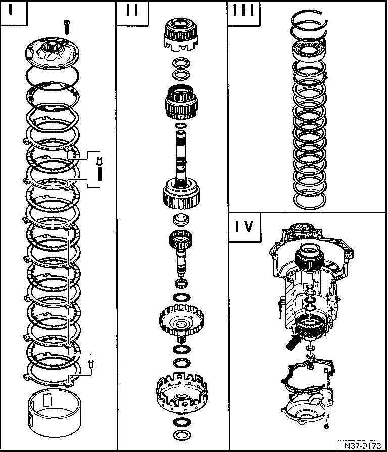 II-Reverse clutch -K2- to large sun gear, removing and installing.