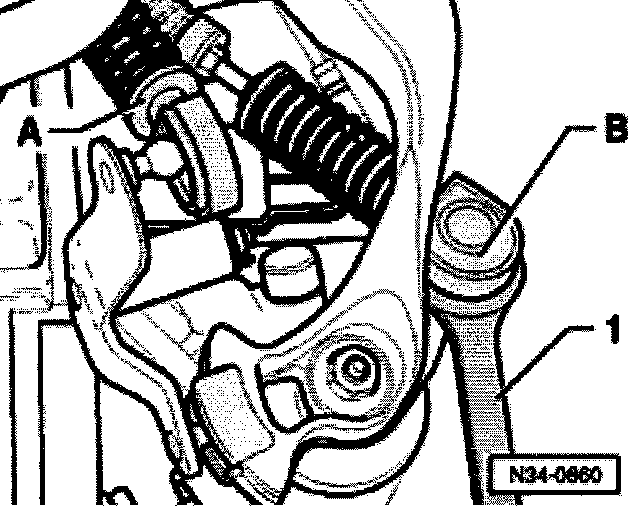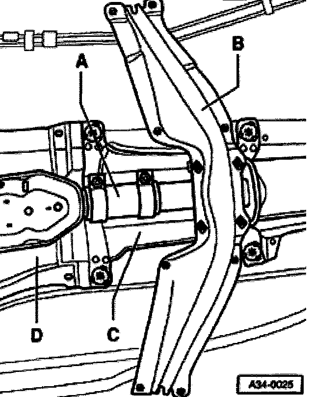 - Pry gate selector cable -A- and gear selector cable -B- off transmission using an open jaw spanner.