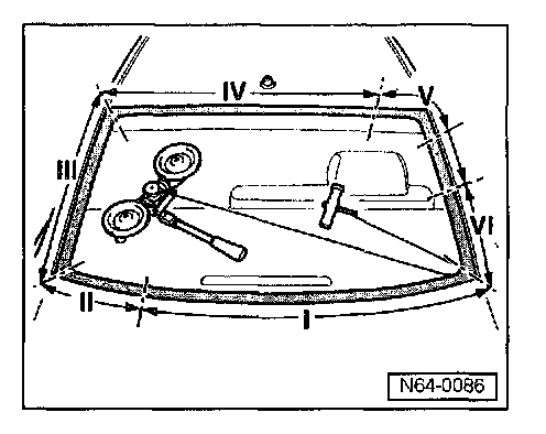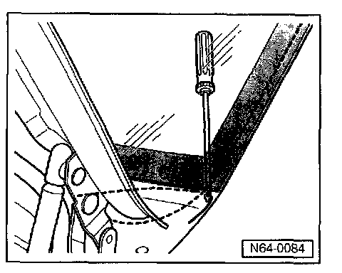- Pull cutting thread with awl (from VAG 1474A) through adhesive seal material into vehicle interior.