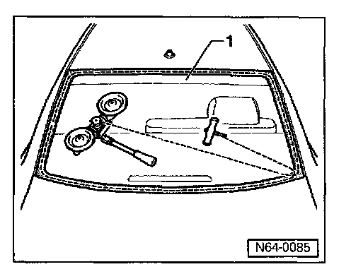 - Slide protective film -1- (VAG 1474/14) between rear window glass and headliner.