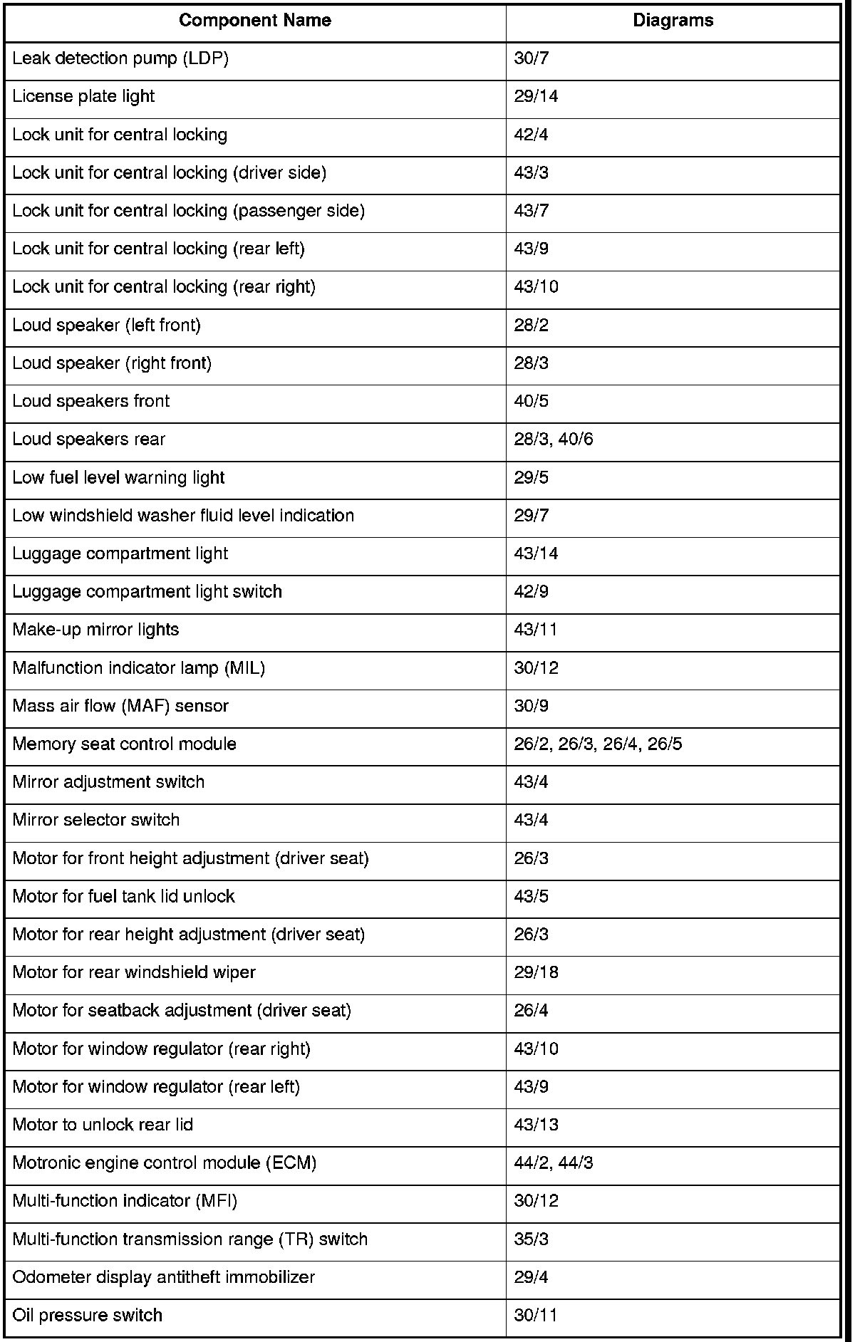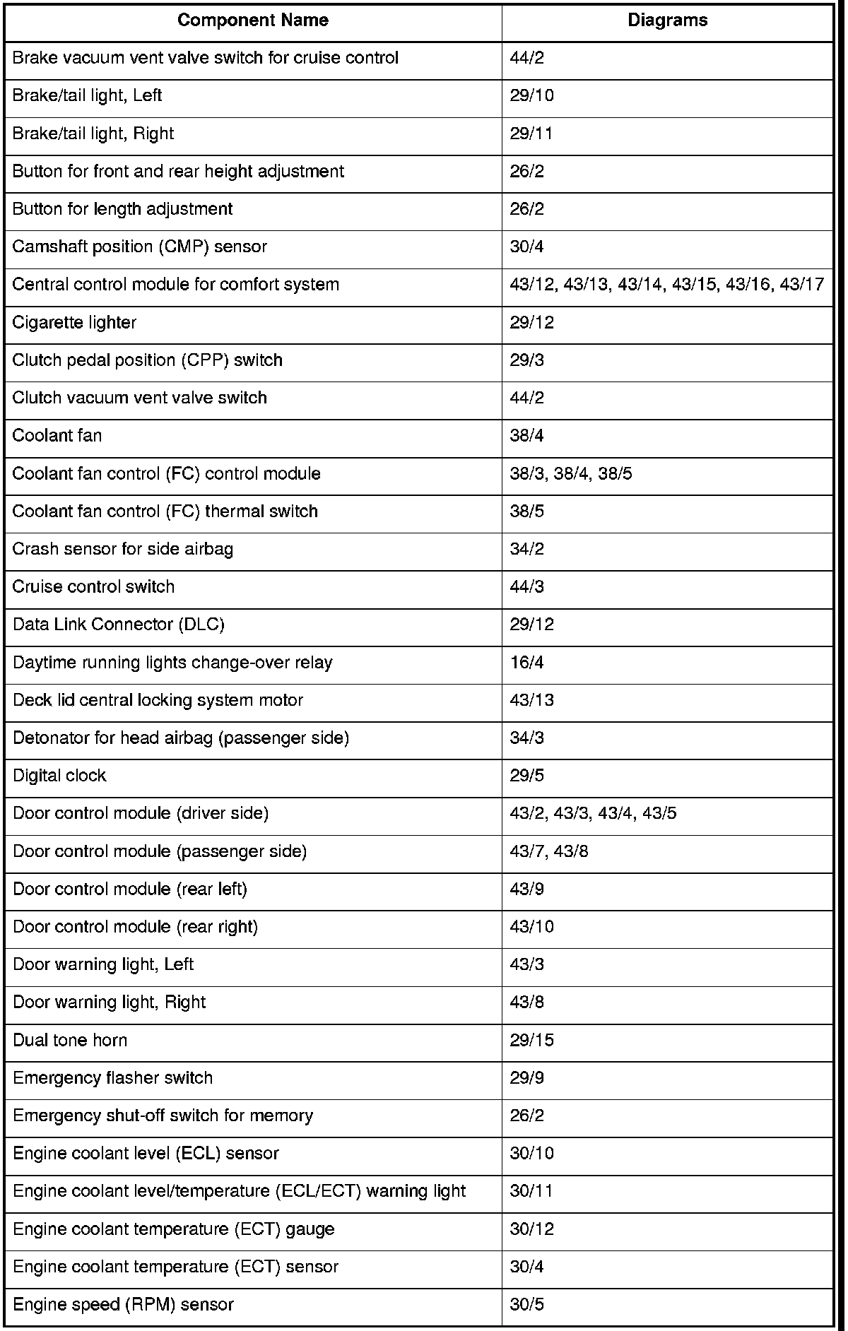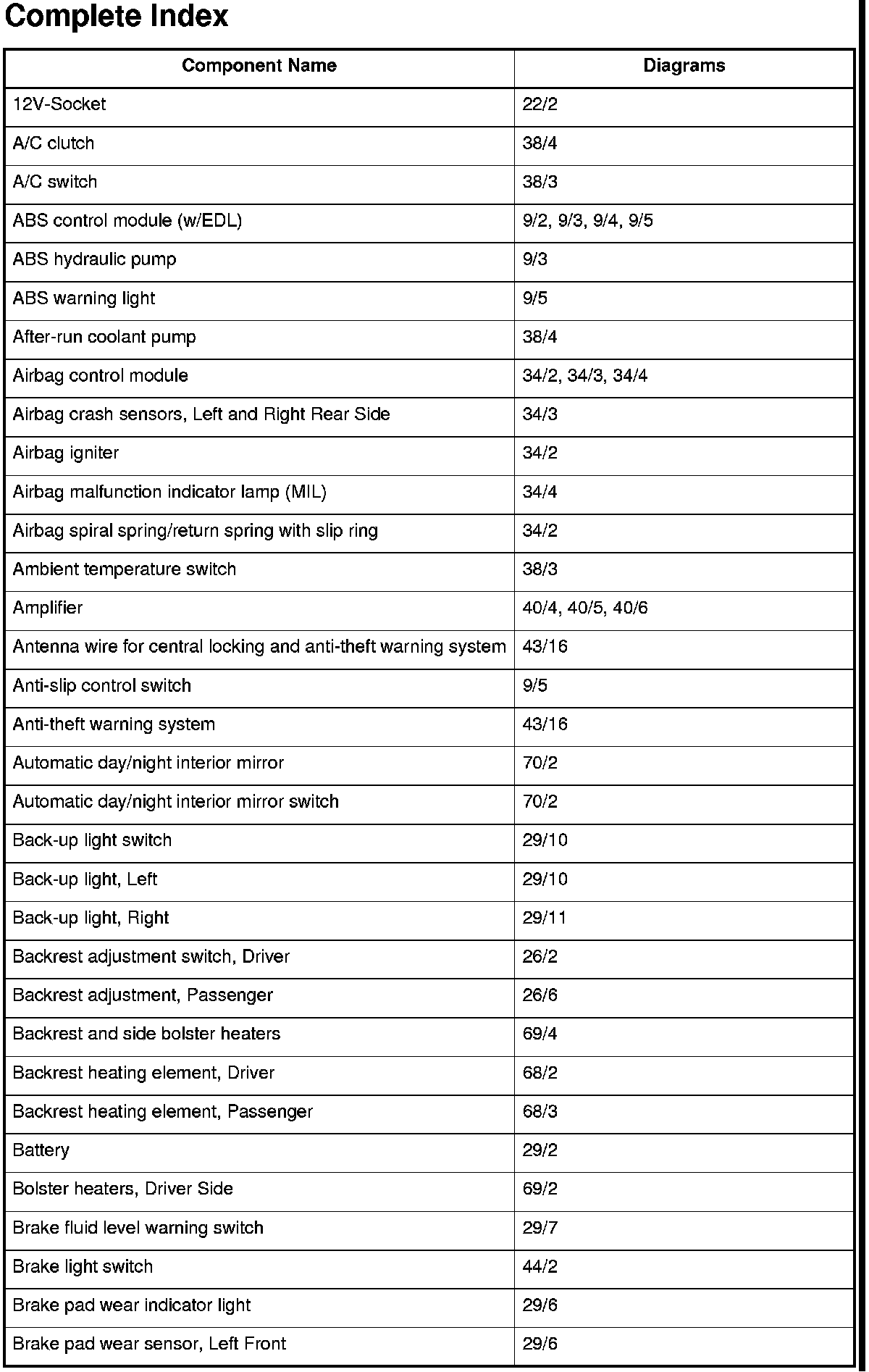 Master Diagram Index