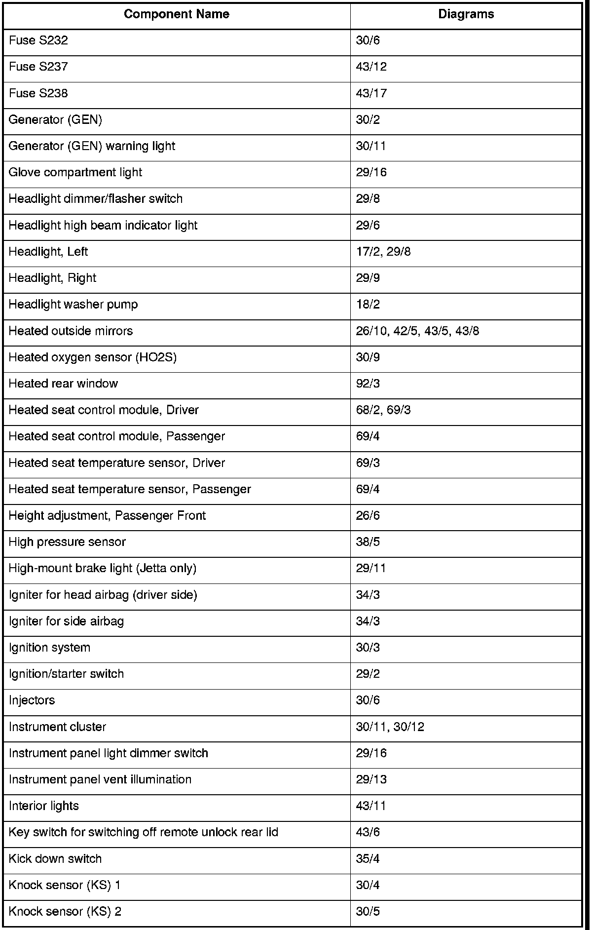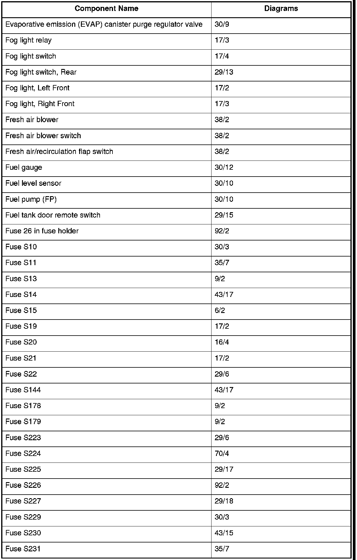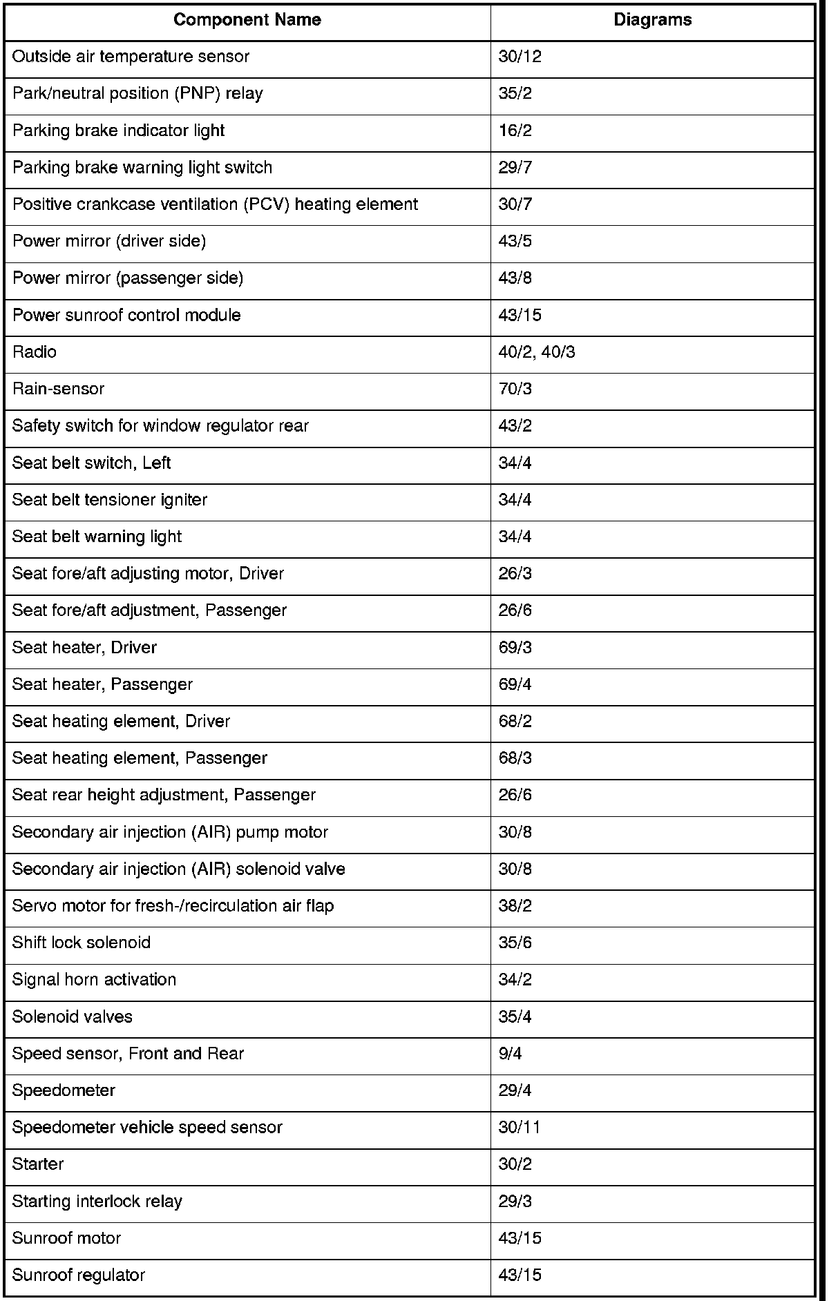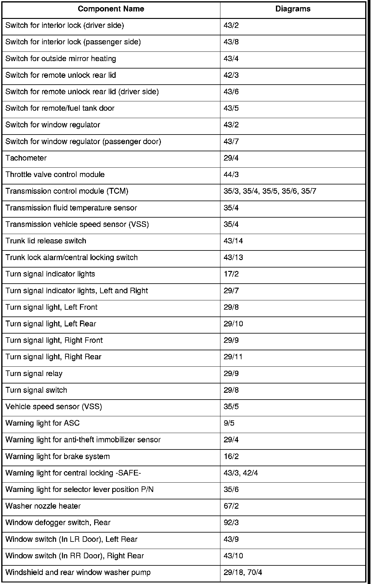 Master Diagram Index