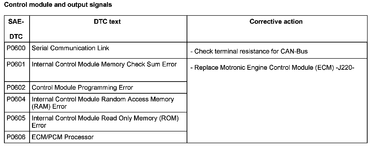 DTC P0600 - P0606: