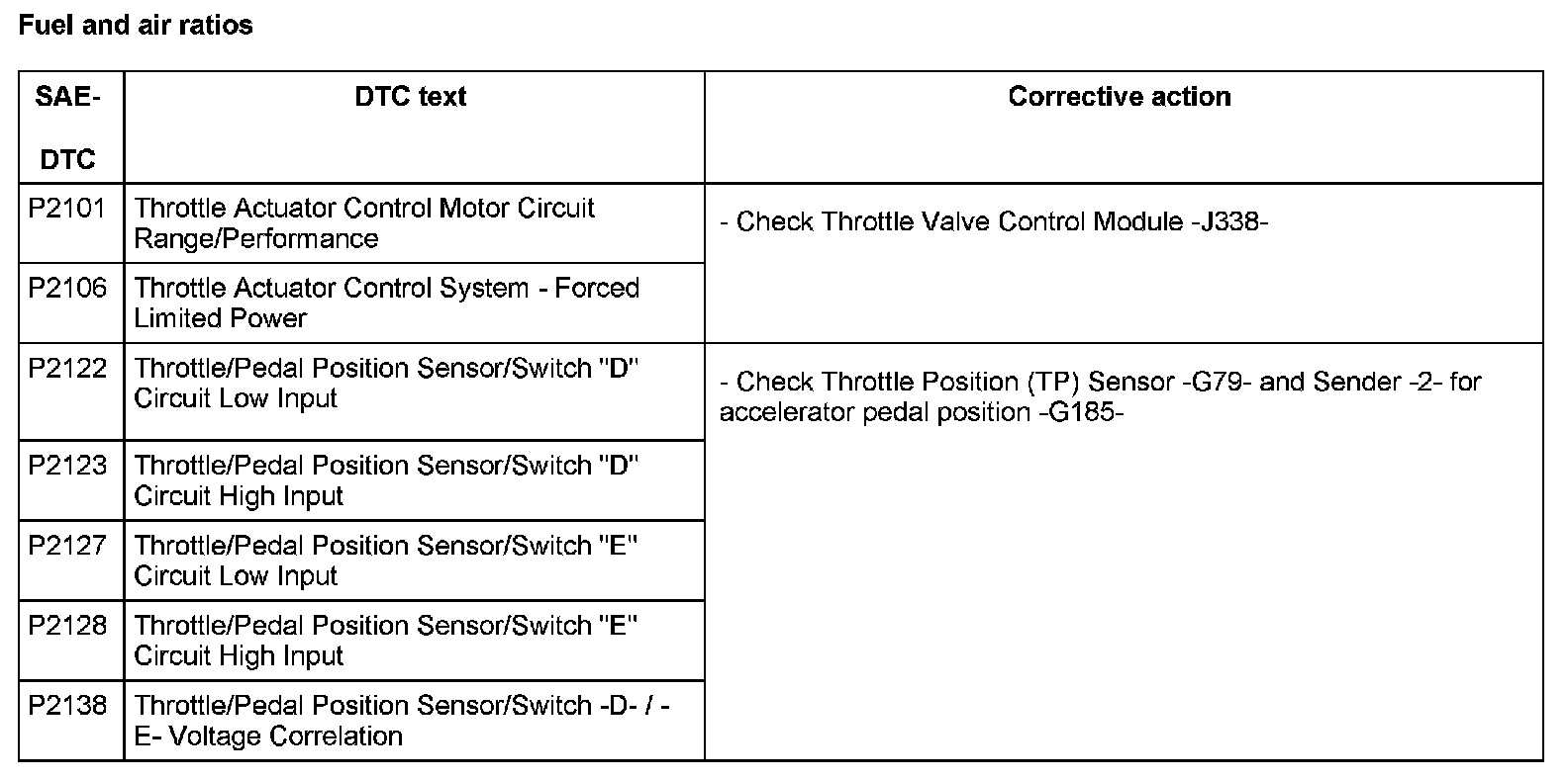 DTC P2101 - P1238: