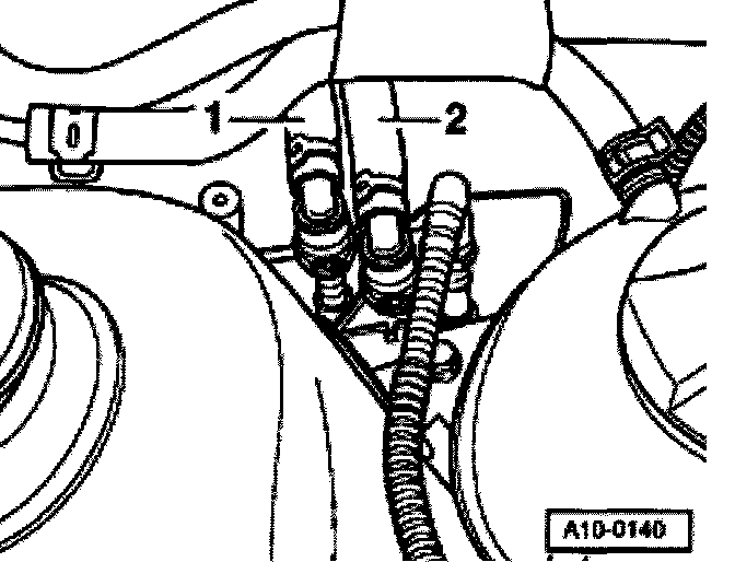 - Remove coolant hoses -1- and -2 from throttle control unit and plug hose ends.