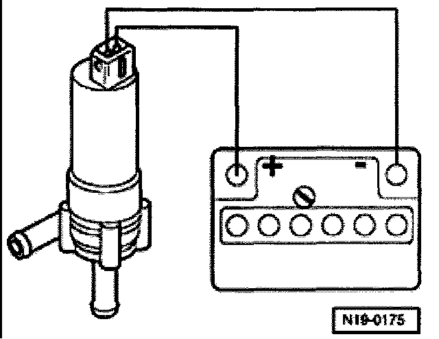 - Connect contacts on coolant feed pump -V51 - with battery using auxiliary cables from VAG 1594 A.