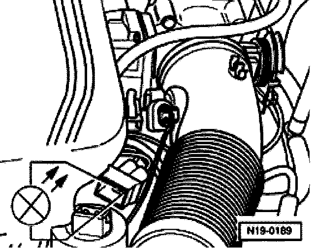 - Connect VAG 1527 B diode test lamp to disconnected attachment plug of coolant feed pump -V51- using auxiliary cables from VAG 1594 A.