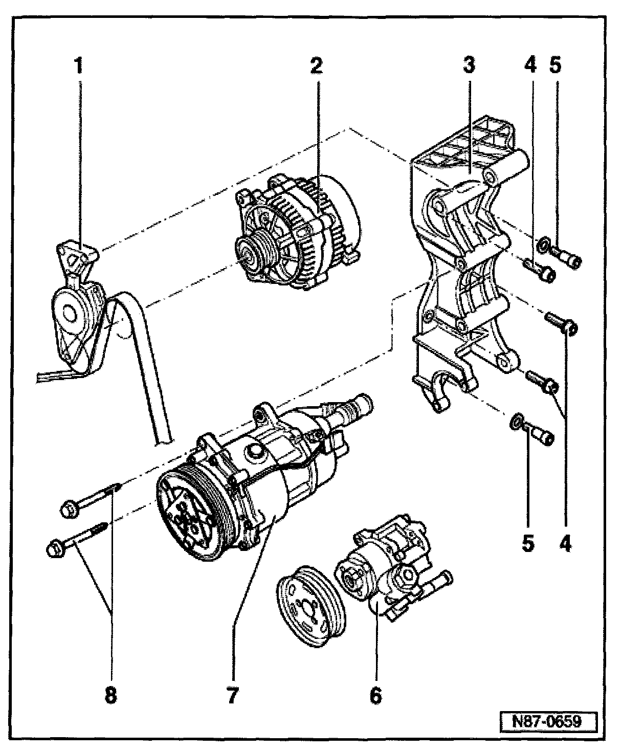 NOTE: The compressor bracket and related components can be removed and installed without discharging the refrigerant circuit.