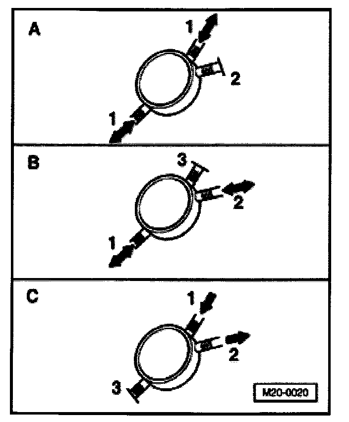 Return line -1- with blue or with blue markings at port labeled -R-.