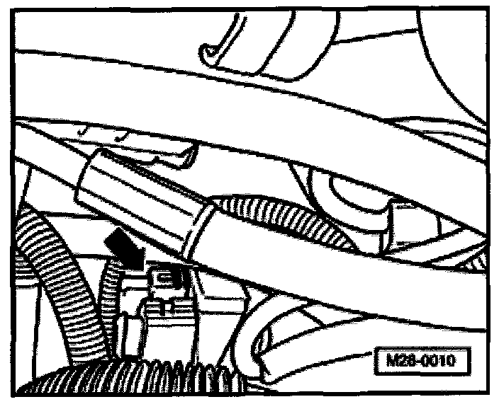 - Disconnect brown 3-pin harness connector to knock sensor 2 (arrow).