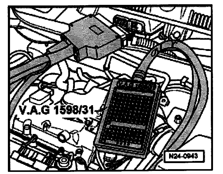 - Connect VAG1598/31 test box to control module wiring harness. Engine Control Module (ECM) is not connected by this action.