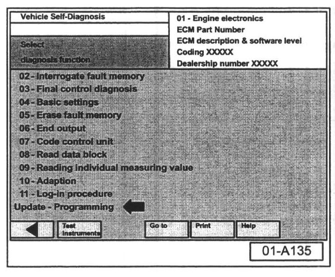 - Select "Update - Programming" option at bottom of screen (arrow).