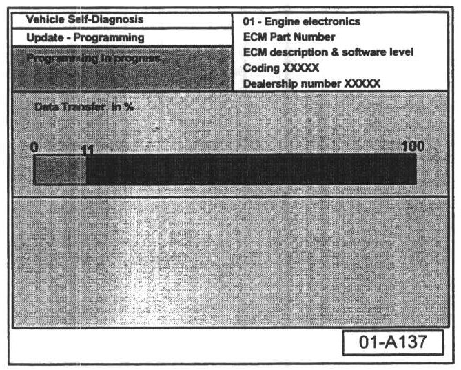The previous data in the ECM is erased and the new data is being transferred to the module from the flash CD.