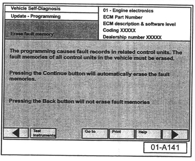 Failure to erase ALL fault memories may cause "Update - Programming" (flashing) procedure to fail!