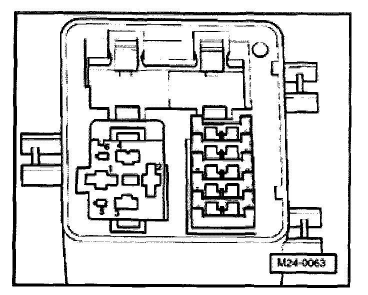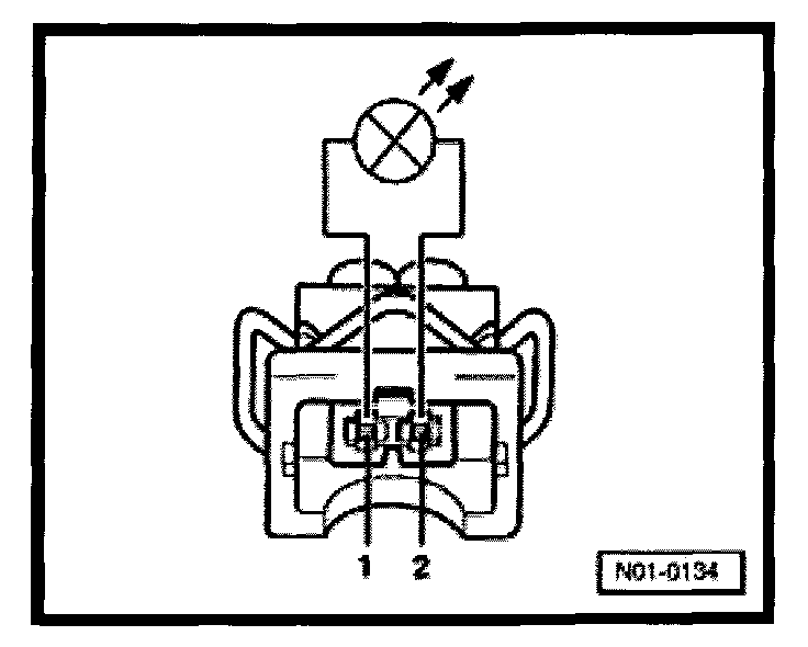 - Using adapter cables from VW1594 connect VAG1527B voltage tester to terminal 1 of relay plate and body Ground (GND).
