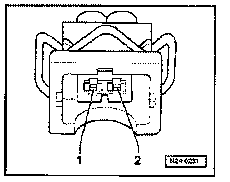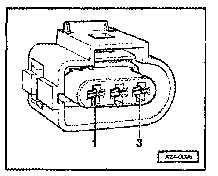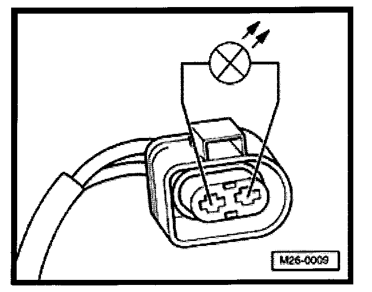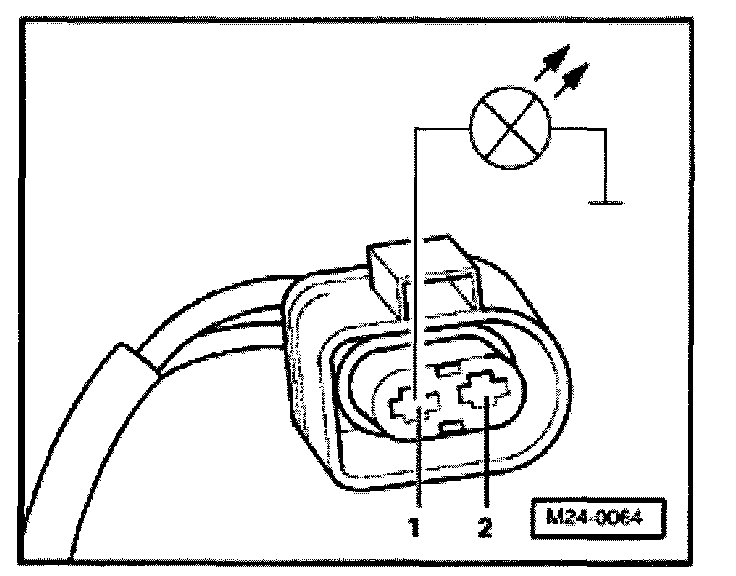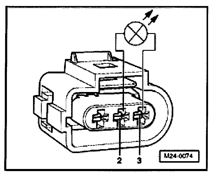 - Using adapter cables from VW1594, connect VAG1527B voltage tester to detached harness connector terminals -2- and -3-.