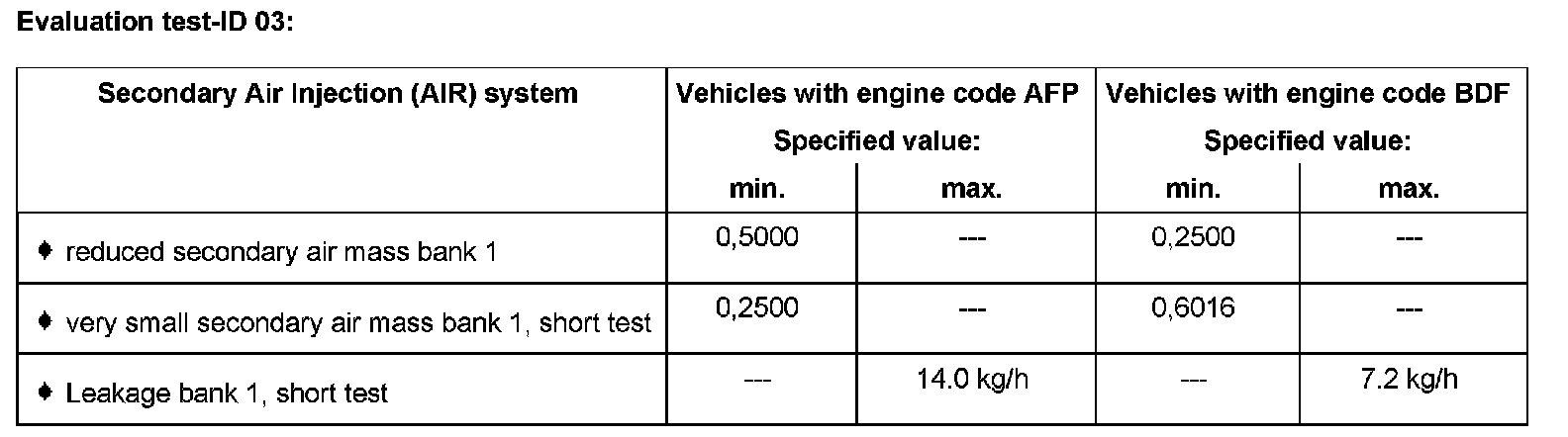 Test-ID 03: Secondary Air Injection (AIR) system