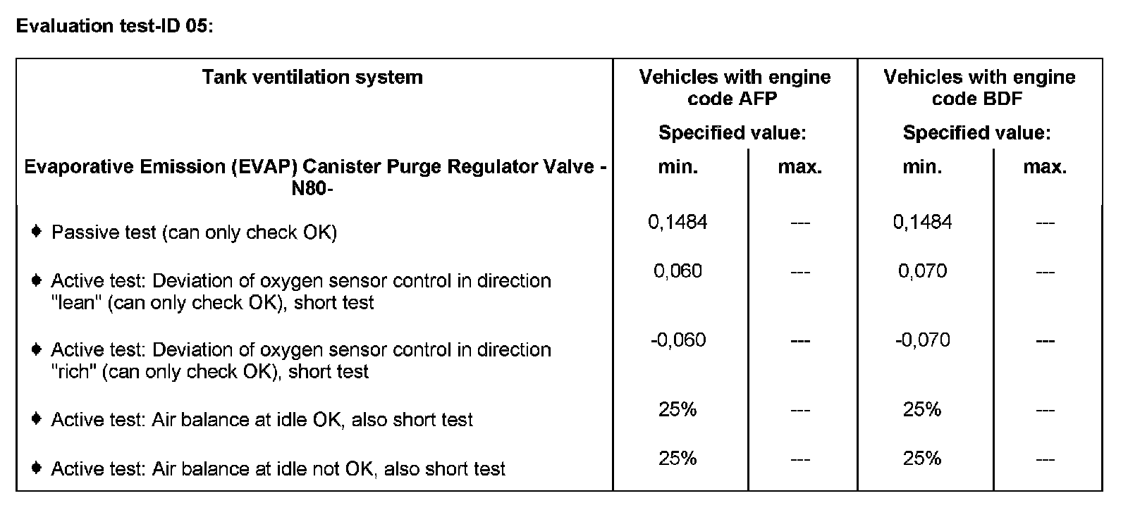- Coolant temperature must be at least 80 degrees C, Diagnostic mode 1: Check measuring values; PID 5, Coolant temperature. Diagnostic Mode 1: Check Measured Values