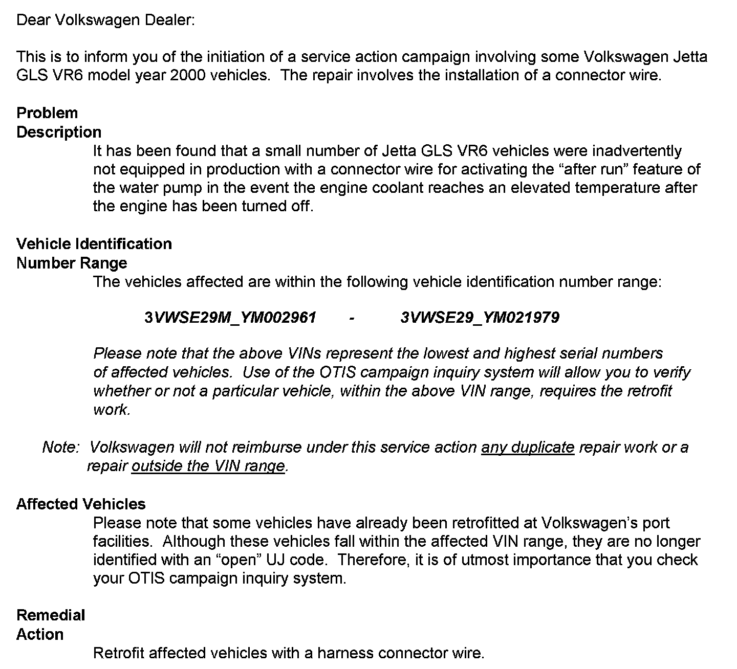 Volkswagen Jetta GLS VR6 Model Year 2000 Vehicles Install Control Unit Connector Wire