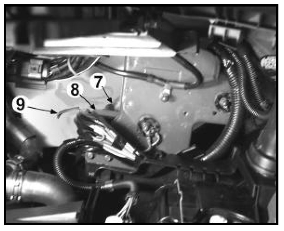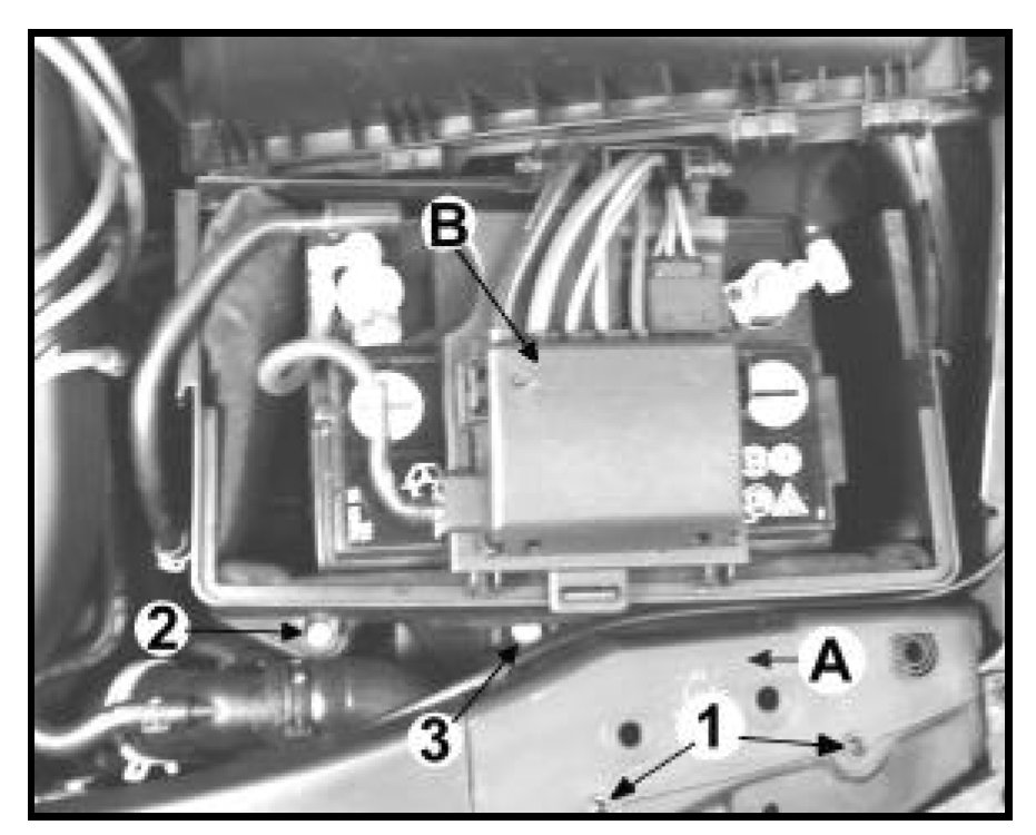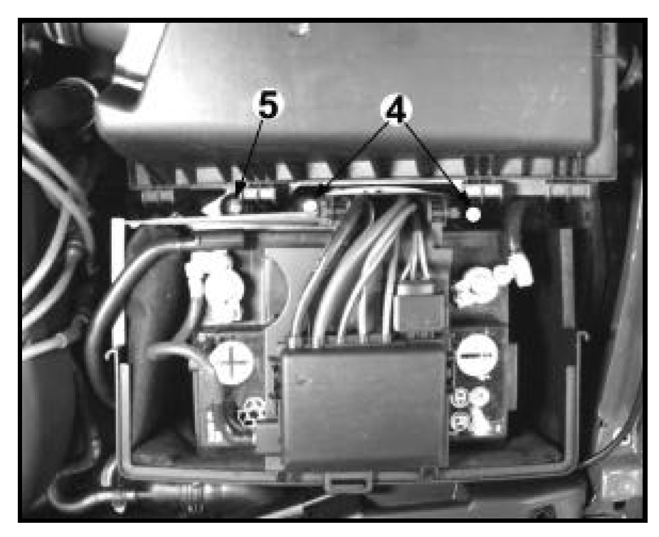 - Remove bolts -4- holding cable guide to battery tray and bolt -5- to air cleaner