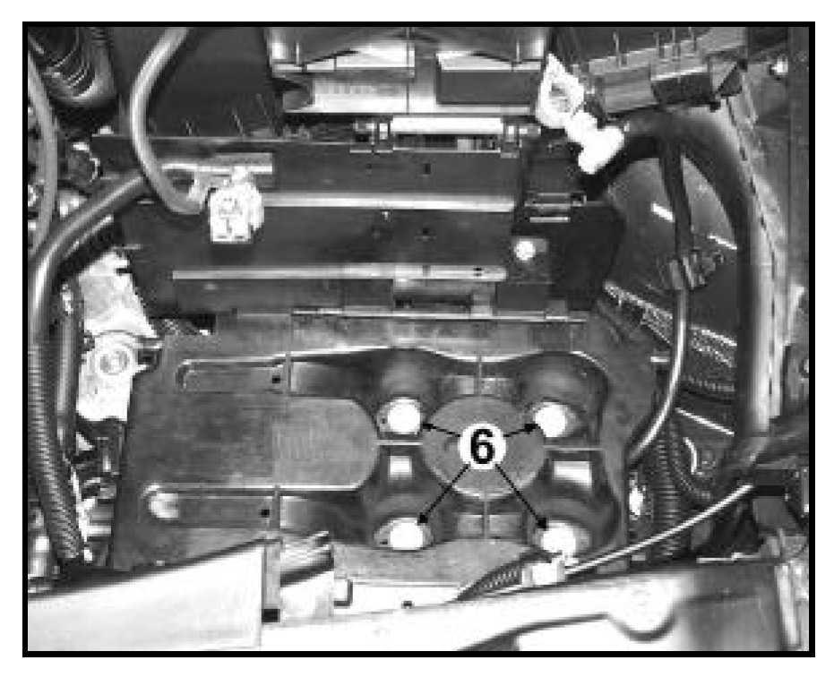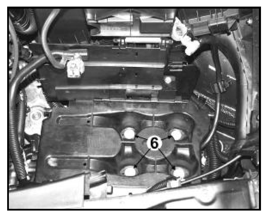 - Reinstall battery tray, using 4 bolts -6- and torque 8 Nm (71 in/lbs)