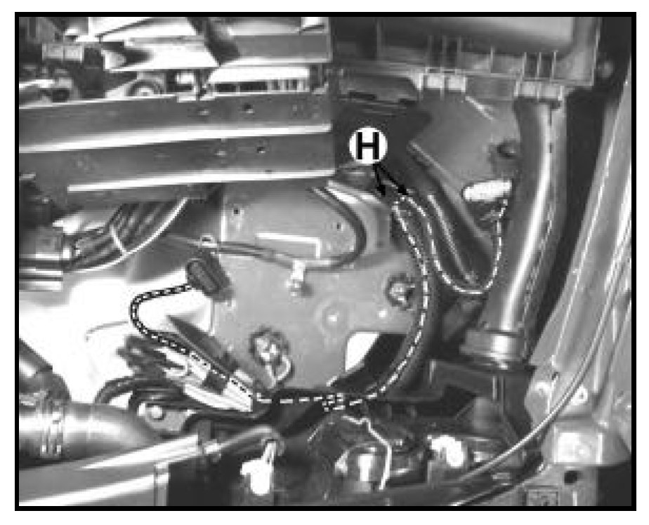 - Carefully slit the tape -H- covering the corrugated harness cover by using the open edge of cover as a guide