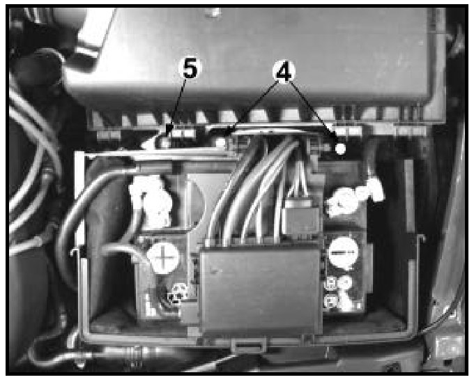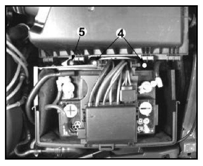 - Remove bolts -4- holding cable guide to battery tray and bolt -5- to air cleaner