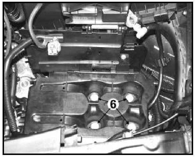 - Reinstall battery tray, using 4 bolts -6- and torque 8 Nm (71 in/lbs)