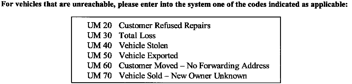 To ensure reimbursement, the OTIS recall inquiry system must show the UM code. Recall claims will only be paid for vehicles which show the recall code UM in the OTIS recall inquiry system at the time of the repair work.