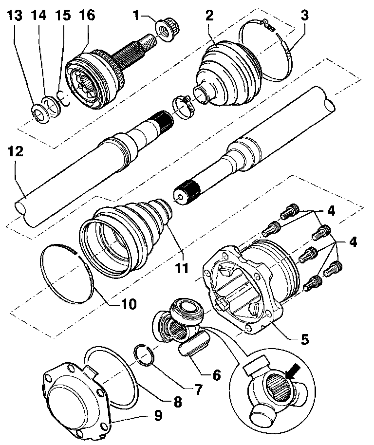 - Greasing refer to Axle Shaft Assembly, Constant Velocity Type; Axle Shaft With Constant Velocity Joint, Servicing.