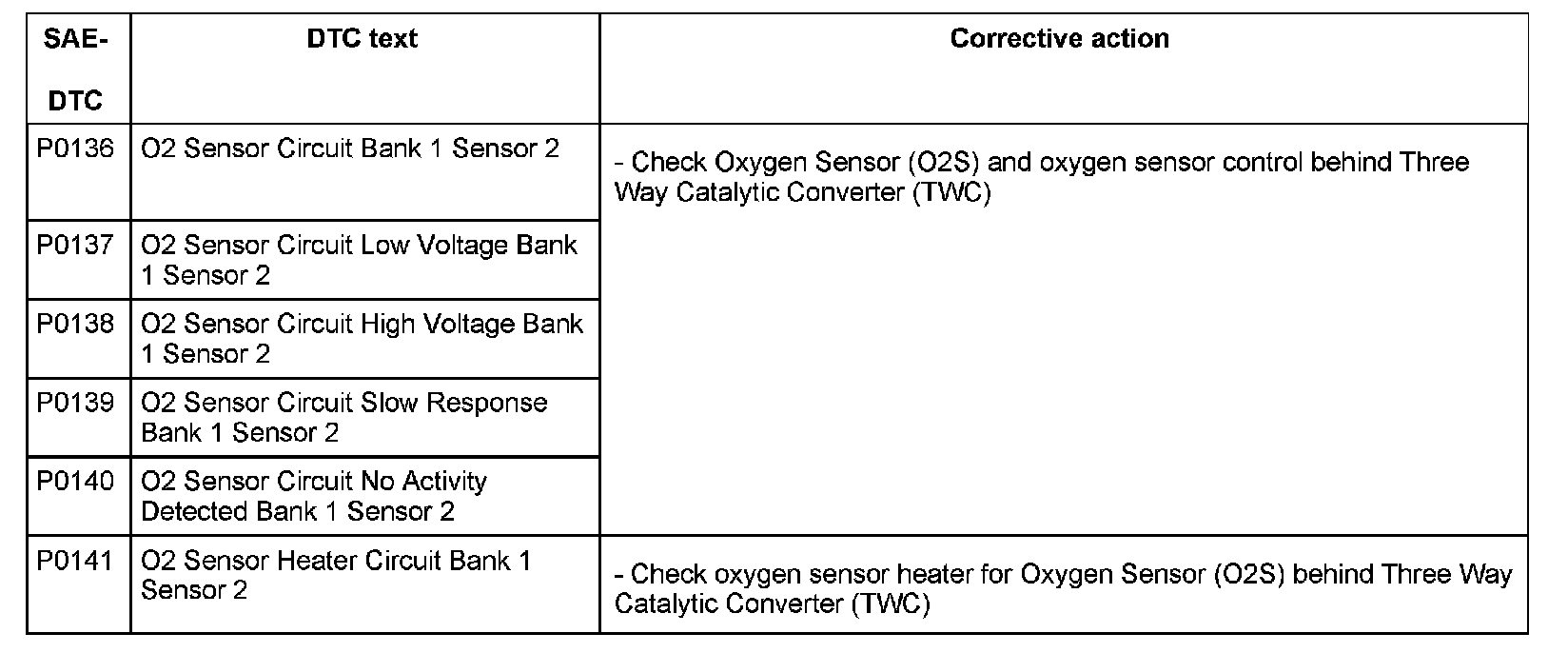 DTC P0136 - P0141: