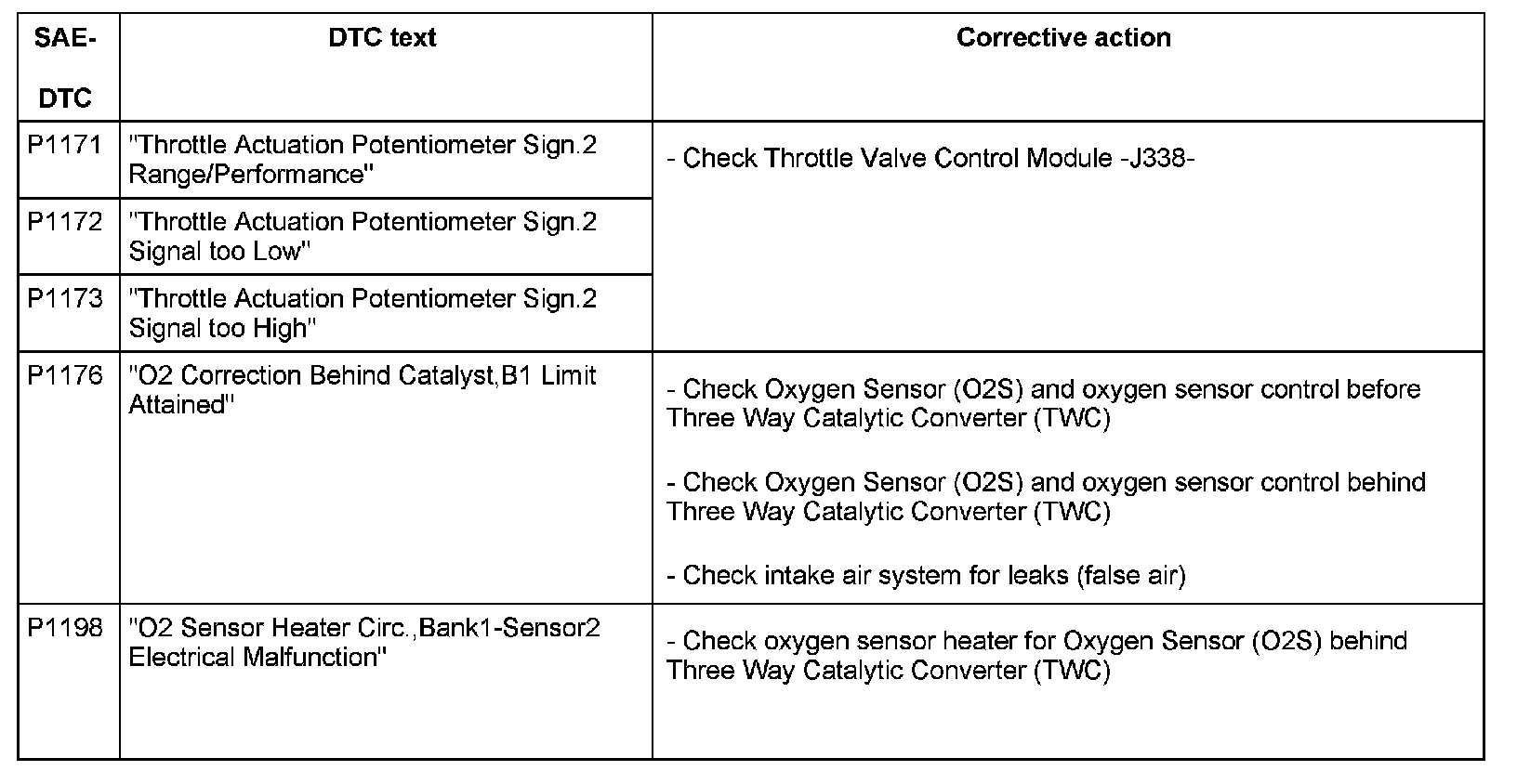 DTC P1171 - P1198: