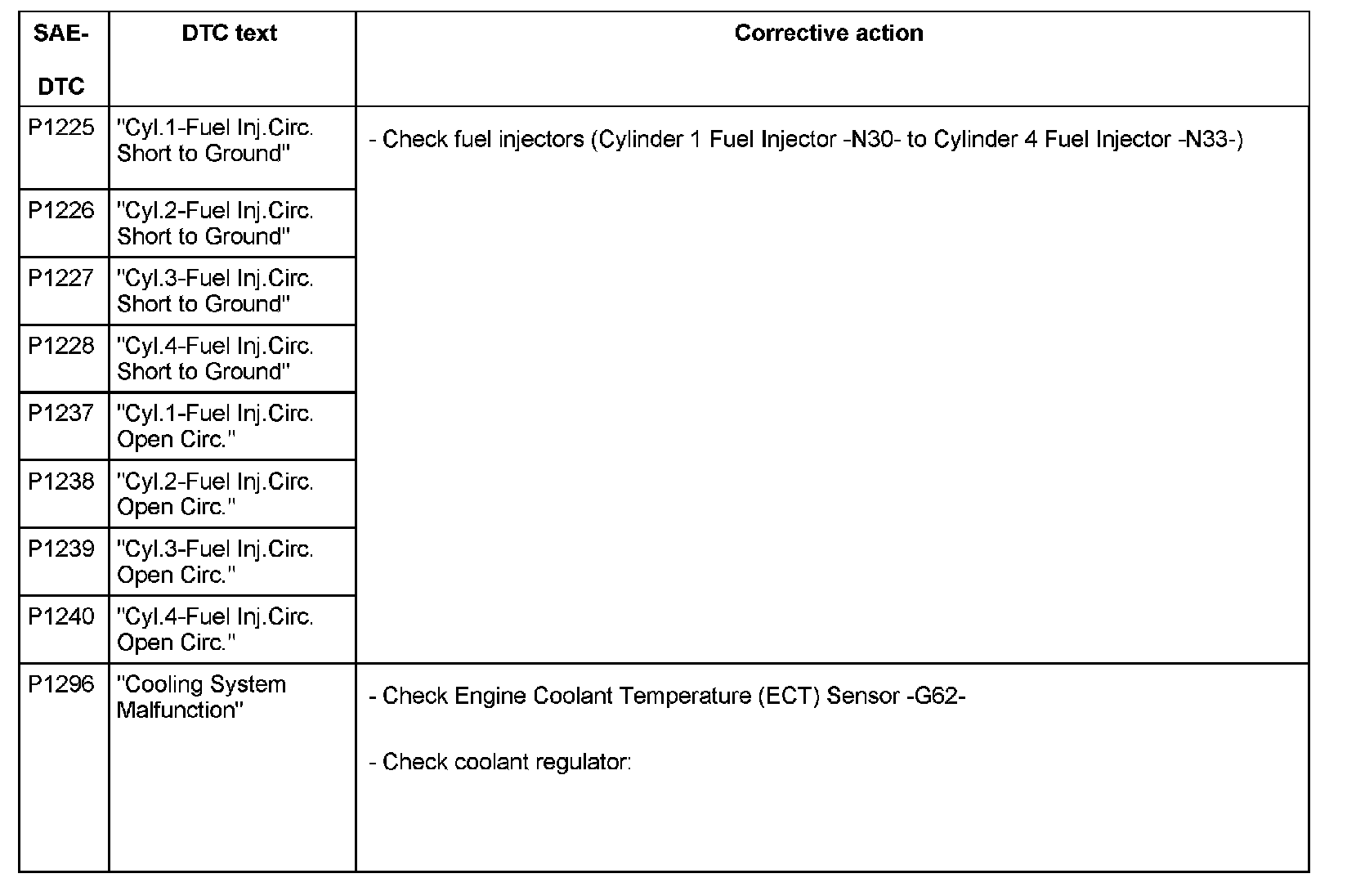 DTC P1225 - P1296:
