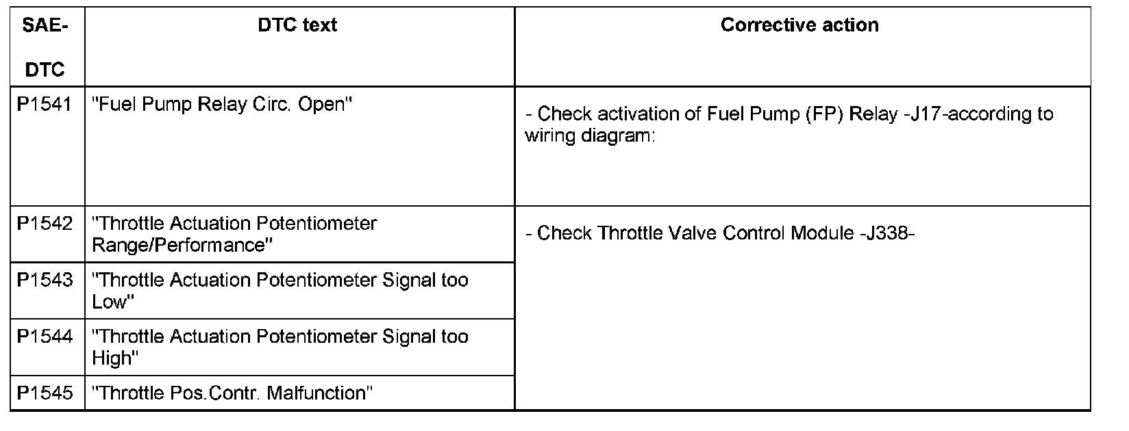 DTC P1541 - P1545: