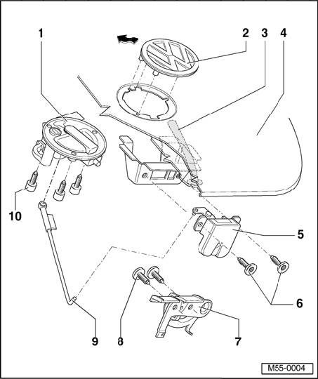 - Unclip operating rod, remove bolts and remove lock from rear lid.