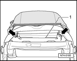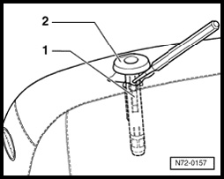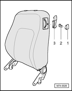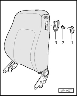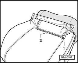 - Press down backrest cushion below guide - 2 - and disengage retaining tab using screwdriver or drift - 1 -.