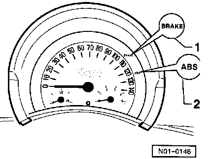 If ABS warning light -K47- (-2-) does not go out after switching the ignition on and completion of test sequence, the malfunction may be: